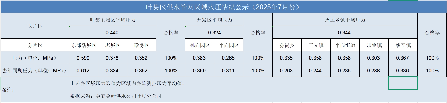 2025年7月水压公示(叶集)